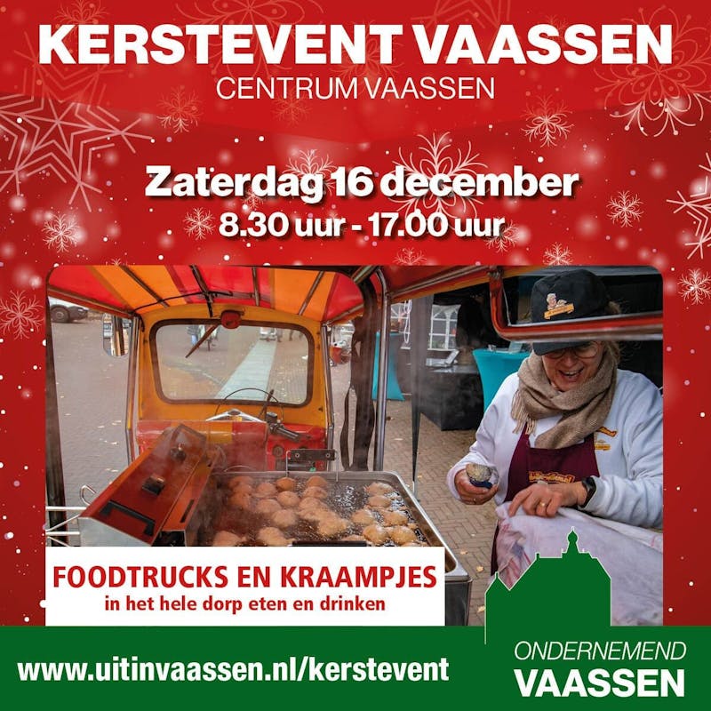 Kom allemaal zaterdag 16 december samen naar het centrum van Vaassen, voor de kerstinkopen en gezelligheid en neem vrienden en familie mee!