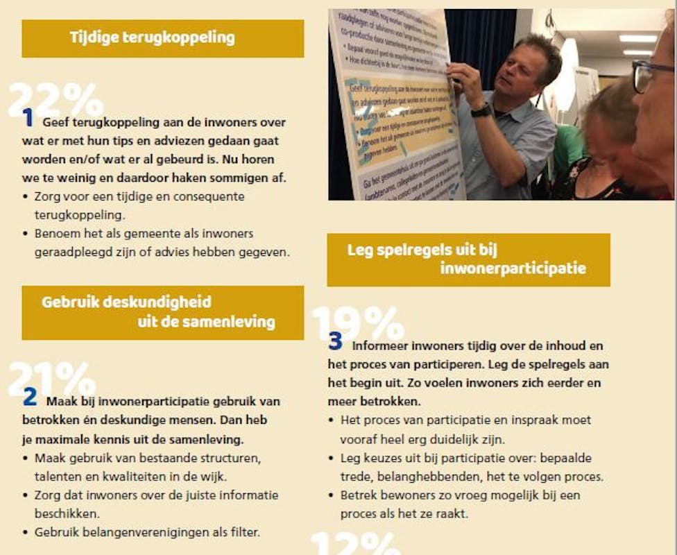 3 Informeer inwoners tijdig over de inhoud en het proces van participeren. Leg de spelregels aan het begin uit. Zo voelen inwoners zich eerder en meer betrokken.