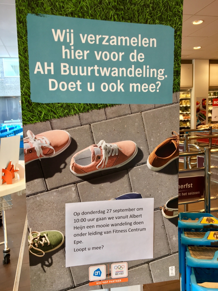 De sportweken in samenwerking met het NOC*NSF zijn weer in volle gang en Albert Heijn Epe en Fitnesscentrum Epe slaan deze week ook de handen ineen. Zo kun je de gehele week je geranium inleveren bij de servicebalie voor 1 maand gratis sporten, is er op woensdag om 11:00 een demonstratie 'Spierkracht & Balans 60+' en is er zaterdag om 11:30 een demonstratie Sh'Bam, de leukste dance workout! En dat is nog niet alles... Vanuit Albert Heijn Epe kun je op donderdag 27 september mee met een mooie buurtwandeling. De starttijd is om 10.00 uur en de wandeling wordt begeleid door Fitnesscentrum Epe. Loop jij ook gezellig mee?