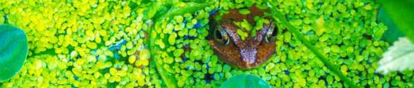 Ik kies in een dergelijk geval vaak voor de gemakkelijkste weg eerst, dan heb ik in ieder geval een foto en kan ik daarna zoeken naar een betere compositie. Bovenstaande compositie wordt vaak het vogelperspectief genoemd, zoals een vogel van boven naar de kikker kijkt.