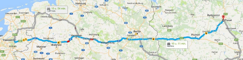 Vanmorgen in alle vroegte staan Jan en Patricia van Laar bij ds. Lavooij voor de deur om hem op te halen. Eerst eten ze nog een samen een ontbijt. Daarna gaan ze rond 19.00 uur met de auto naar het oosten. Gussew is te ver om de reis in een dag te doen en daarom overnachten ze in het Poolse Torun.