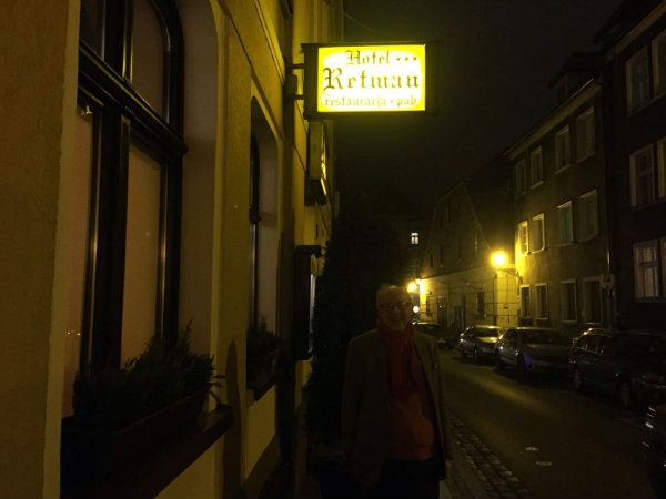 Maar ofschoon een zekere mate van bescheidenheid een waardevolle en tevens schaarse deugd is, hebben we anderzijds – bijbels gesproken – ook een hoge roeping te vervullen, namelijk mens te zijn naar Gods beeld en gelijkenis, waartoe ons in het Kerstkind en de Man van smarten die de Paasvorst werd ook de mogelijkheid toe gegeven is. Dat maakt ons niet alleen ootmoedig, maar ook vrijmoedig verantwoordelijkheden op ons te nemen. Dezer dagen door o.a. naar Gussew af te reizen en de broeders en zusters daar te ontmoeten en wederzijds hierdoor bemoedigd te worden. Daartoe zijn we vanmorgen vroeg vertrokken en hebben we in de Mitsubishi van Jan en Patricia een uitstekende rit gehad die ons om 18.15 in deze stad gebracht heeft. Na het centrum wat bekeken te hebben, betraden we een Pools restaurant, aten er smakelijk om daarna onze wandeling voort te zetten en die met een Irish koffie te besluiten. Buiten sneeuwt het heel licht en het is zo rond het vriespunt, binnen in deze kamer echter is het tropisch warm, zoals in veel Oost-Europese hotels.