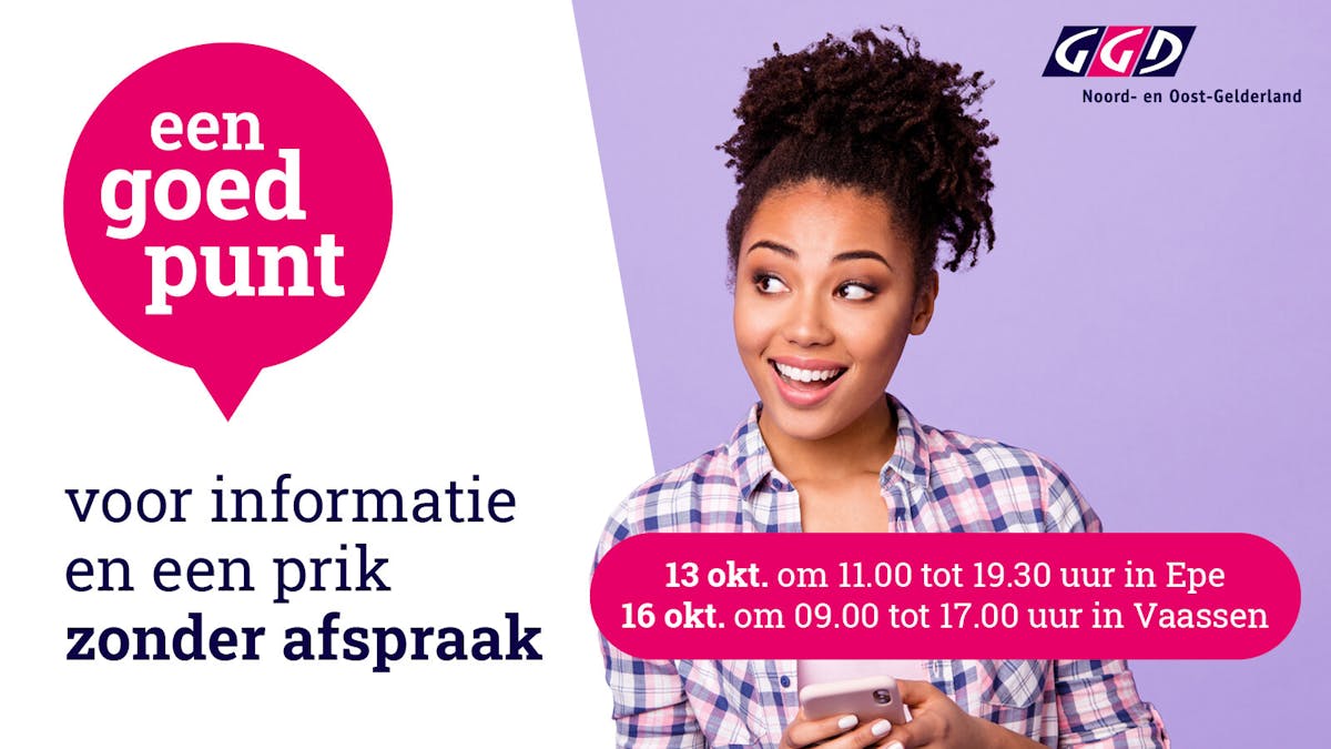 Je kunt vandaag (16 oktober) tussen 9.00 - 17.00 uur in dorpscentrum de Wieken in Vaassen terecht op de pop-up locatie van GGD Noord- en Oost-Gelderland. Loop hier binnen voor extra informatie en voorlichting over het coronavirus en de coronavaccinatie. De locatie heeft een vrije inloop voor iedereen die vragen heeft of zich wil laten vaccineren (voor de 1e of 2e prik), zonder eerst een afspraak te maken. Vergeet je identiteitsbewijs en je mondkapje niet!
