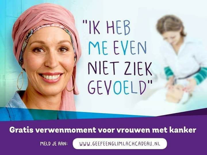 In de maand februari geeft Salon schoonheid 5 vrouwen met kanker een gratis verwenmoment. Aanmelden voor deze actie kan eenvoudig via de actiewebsite www.geefeenglimlachcadeau.nl. Ken jij iemand met kanker? Attendeer haar dan op deze actie en geef haar een glimlach cadeau. Er zijn al 3 verwenmomenten vergeven. Dus ik er zijn er nog 2 verwenmomenten mogelijk.