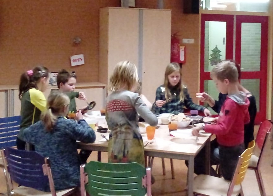 Vrijdag 28 december waren de kinderen van debasisschoolleeftijd uit Zuuk bijeen voor de kindergourmet. Aan verschillendetafels zaten ruim dertig kinderen in leeftijdsgroepen bij elkaar. Degespreksonderwerpen waren geen probleem er werd al snel gekwetterd dat het eenlieve lust was. De oudste kinderen vertelden elkaar ‘wie op wie’ was. Eenbekentenis leidde al snel tot commentaar van de anderen zoals ‘Die is wel ergstom’ of juist ‘Die is zeker wel leuk!’ Aan een tafel waar de jongens deoverhand hadden, was het meeste lawaai doordat ze lekker stoer moesten doenonder elkaar. Ondertussen werd er flink gegeten. Een worstje, karbonaadje,shoarma vlees en een pannenkoek was al snel gebakken en alles vond flinkaftrek. Het was een gezellige boel en voordat je het wist was de twee uur om enzat het meeste in de maagjes van het jonge volk. Met dank aan alle volwassenendie dit mogelijk hebben gemaakt.
