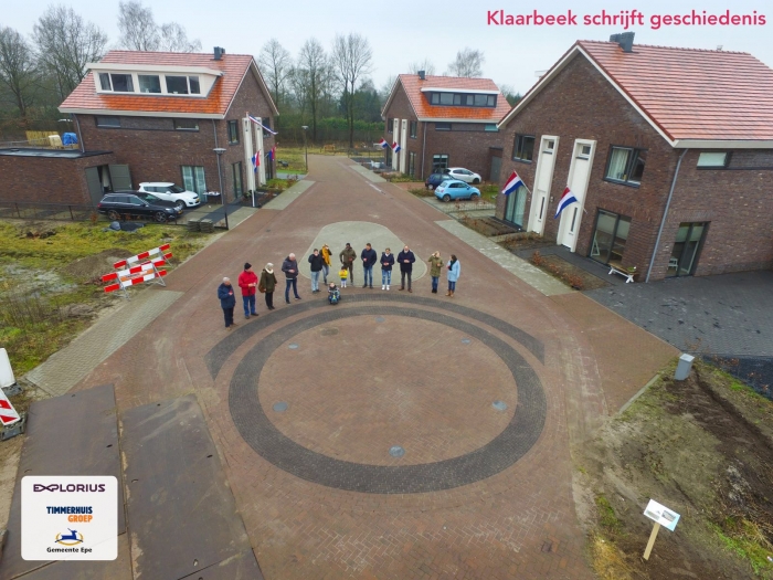 Vandaag gingen de vlaggen uit bij een aantal van onze medebewoners aan de Glazenmaker. Zoals jullie deze week konden zien is het straatwerk opnieuw gelegd en dat heeft een heel bijzondere reden... Er zijn cirkels in het straatwerk gelegd op exact dezelfde locatie waar in 2015 de resten zijn aangetroffen van een hooiberg met greppel uit de Middeleeuwen. Deze hooiberg behoorde bij een boerderij als onderdeel van een nederzetting. Er zijn zelfs resten gevonden die herleiden naar de IJzertijd. Dit bijzondere stukje Epe is vandaag officieel geopend samen met de buurtbewoners, de Gemeente Epe en de projectontwikkelaar. Neem gerust eens een kijkje. Hier zijn wij als Klaarbeekbewoners natuurlijk erg trots op!
