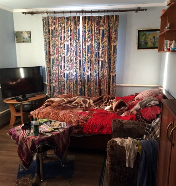 Zij had er namelijk al een halve dag op zitten, omdat zij om 04.00 uur de bus had gepakt om naar haar werk te gaan op een boerderij met 42 koeien. Nu was ze even thuis en om 14.30 uur moet ze er weer zijn. Een sterke vrouw die alles razendsnel deed en een erg leuke hond had die ze gelukkig ook in de kamer liet komen. Ze deed dit werk waarschijnlijk omdat ze het leuk vond, want ze was al gepensioneerd (met 55 is dat al in Rusland), maar zeker ook om nog wat bij te schnabbelen om bijvoorbeeld haar kinderen op te zoeken die nogal waren uitgezworven over het land.