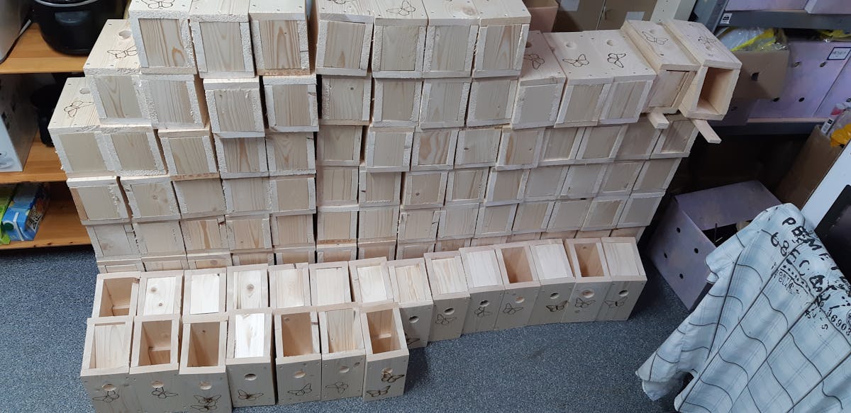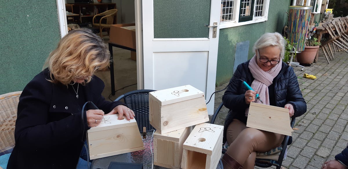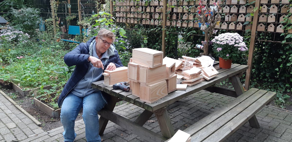 Er wordt door diverse vrijwilligers gewerkt aan het in elkaar zetten van de vogelhuisjes voor kool- en pimpelmees om de eikenprocessierups te bestrijden. Kom gerust eens aan om te kijken of te helpen. Aankomende woensdag, vrijdag en zaterdagmiddag vanaf 13.30 is er zeker iemand.
