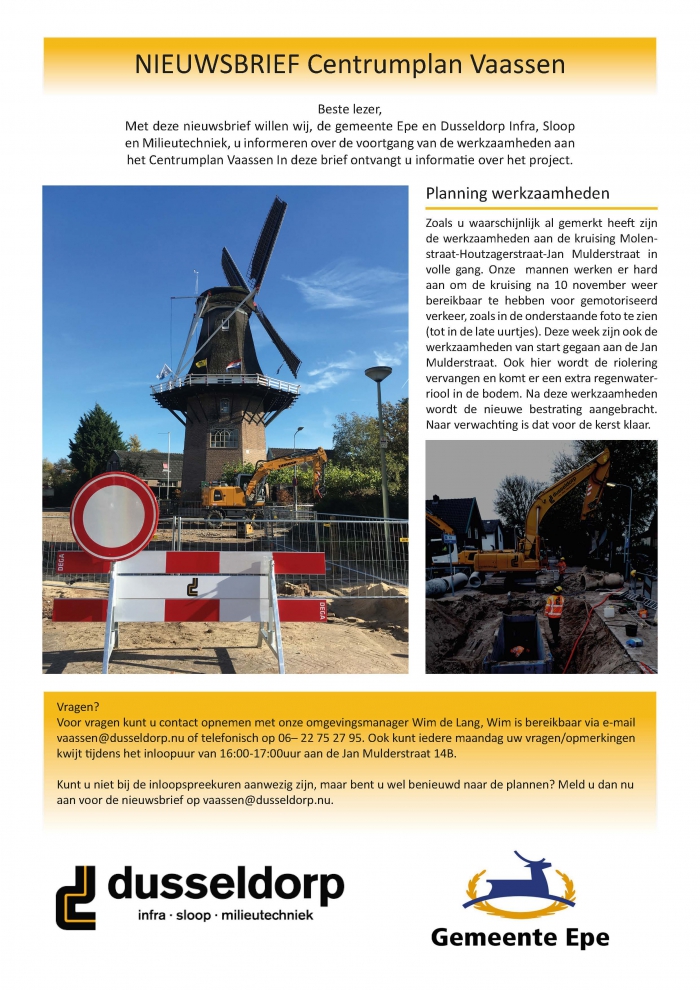 Hierbij de nieuwsbrief ter informatie van het Centrumplan Vaassen.
