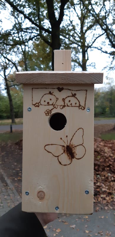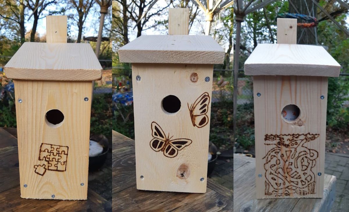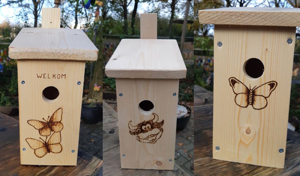 De huisjes zijn versierd met een vlinder, de makers zijn erg creatief soms. Ook zijn er wat gepersonaliseerde huisjes gemaakt. Misschien een idee voor een cadeautje.