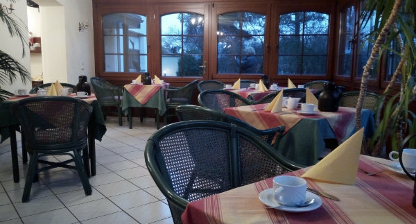 Al zagen we geen kraanvogels op het stuk land achter ons hotel, wij vertrokken na een heerlijk ontbijt in de gezellige Speisesaal wel weer, ofschoon we het toch niet konden laten even door het Park Sans Souci te rijden waar de Pruisische koningen woonden, al was het maar om het contrast te zien tussen de kleinbehuisde mensen rondom Gussew en de enorme paleizen hier. Maar of ze hier echt 'sans souci' (d.i. zonder zorg) leefden? Uiteindelijk hangt onbezorgd, blij of dankbaar zijn niet af van uiterlijke omstandigheden!