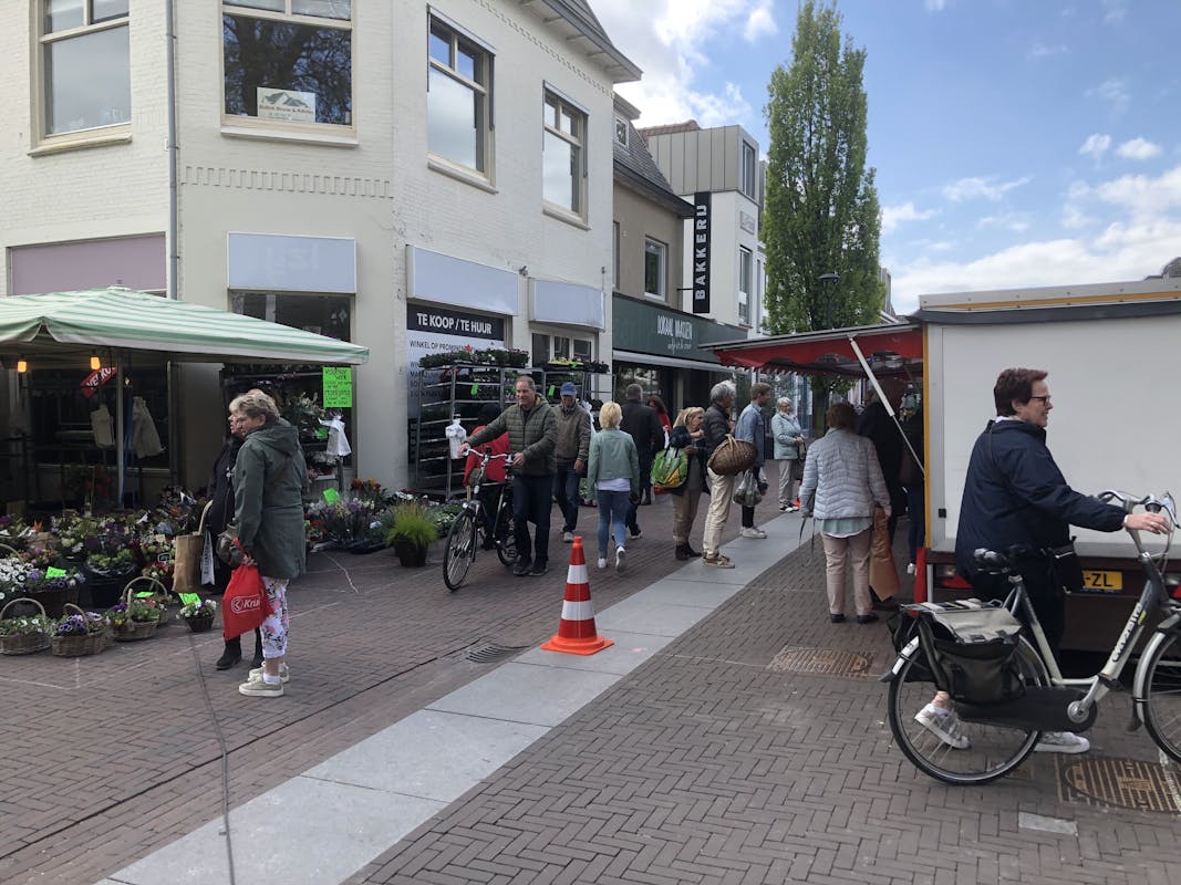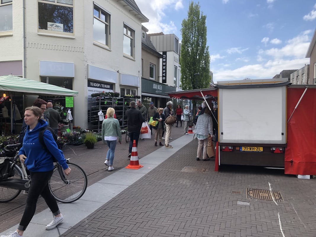 Tijdens de Markt was het zaterdag erg druk op de Vaassense Dorpsstraat. Blijkbaar vinden de mensen anderhalve meter afstand niet meer nodig. Overigens kun je voor de kramen wel strepen trekken, maar als er dan geen ruimte mee overblijft heeft dat weinig zin.