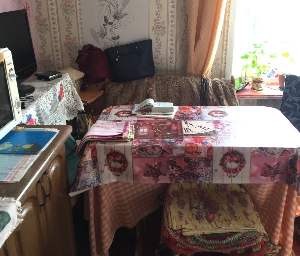 Vervolgens reden we naar Babuschkina waar we ook een huiskerkje bezochten dat er, nadat ik er vorig jaar geweest was, nu veel beteruitzag. Hier troffen we vier vrouwen aan en ook hier waren er naast nog wat vrouwen op zondag ook kinderen die tot de gemeente behoren. Voor hen pakten we wat rugzakjes uit de auto en hebben we later ook veldflessen gekocht. Daarnaast hebben we ook wat geld achtergelaten om ze deze zomer in Polen met elkaar op kerkkamp te laten gaan. Misschien dat we later dit jaar nog een beroep op u, lezer, doen om uw fiets die u misschien niet meer gebruikt beschikbaar te stellen voor deze kinderen.