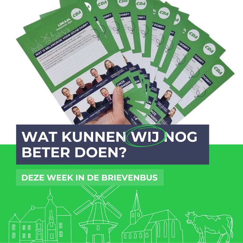 Wij doen ons uiterste best om iedereen zo goed mogelijk te vertegenwoordigen in de gemeenteraad. Daarom ontvang je deze week van ons een flyer in de brievenbus waarop je kunt aangeven wat we volgens jou aankomende 4 jaar beter kunnen doen. Wanneer je de flyer met jouw opmerkingen inlevert op 5 maart tussen 10.00 en 12.00 bij onze kraam op de markt in Epe of tussen 13.00 en 15.00 uur bij onze kraam op de markt in Vaassen, dan ontvang je van ons een presentje.