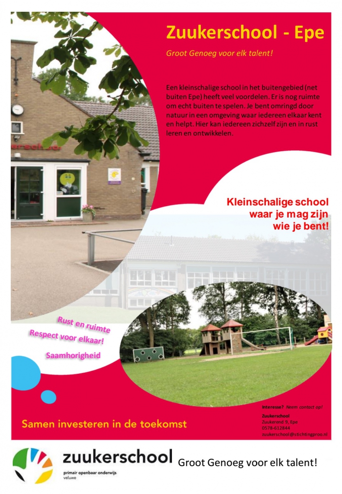 De ligging van de Zuukerschool is net buiten Epe in het buitengebied van Zuuk. Een kleinschalige school gelegen midden in de natuur.
