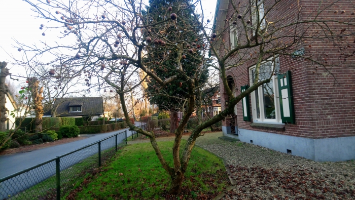 Vandaag heb ik de kerstboom opgeruimd en ben even naar de buren aan de Veenweg op bezoek geweest. Ik ga dan via de achterdeur (volgens goed vaassens gebruik) en de mensen zijn blij om me te zien, ze hebben van alles te vertellen. Ik vertel dat ik kom voor de Mispels omdat ik Mispeljam zo ontzettend lekker vind, en dan komen de verhalen los hoor..... De buurman is altijd actief geweest in het Epese en gaat nog regelmatig op de fiets naar Beekbergen of Epe, ook de buurvrouw doet mee. Ja zegt de buurman ik wilde je nog waarschuwen want de merels vinden ze ook heel lekker en die gooiense uit de boom. Samen hebben we een grote pan vol Mispels gepukt.